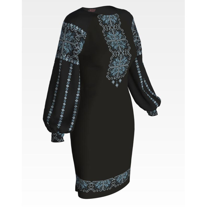 Заготовка для вишивки жіночої сукні Ніжний орнамент призначена для часткової зашивки бісером або нитками. Схема надрукована на шовковій тканині чорного кольору екологічно чистими стійкими фарбами, що не змиваються після прання. Відрізи розкроєні з урахуванням запасів для зручного вишивання та подальшого пошиття виробу.