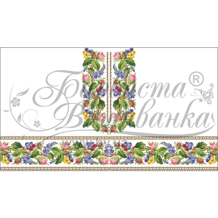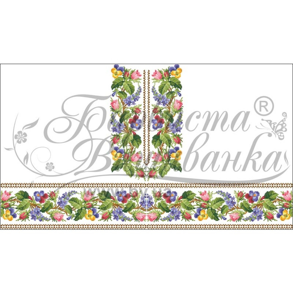 Заготовка для вишивки жіночої сукні Колоритні братки призначена для часткової зашивки бісером або нитками. Схема надрукована на білому габардині екологічно чистими стійкими фарбами, що не змиваються після прання. Відрізи розкроєні з урахуванням необхідних запасів для зручного вишивання та подальшого пошиття виробу.