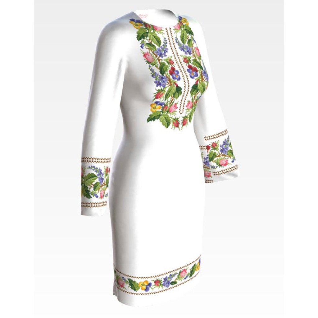 ПЛ117пБнннн Барвиста вишиванка Заготовка для вишивки - Сукня жіноча Колоритні братки р.42-54 габардин, білий