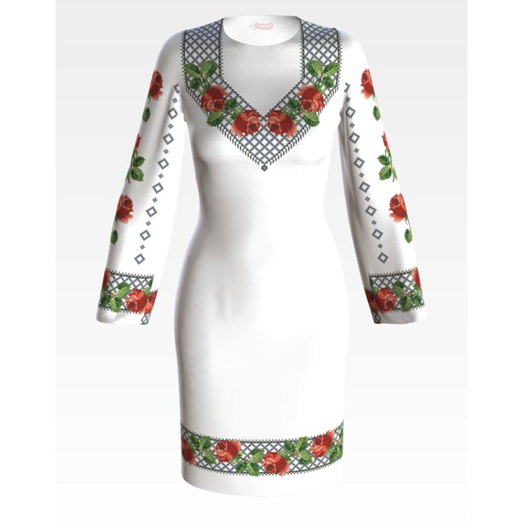 ПЛ119пБнннн Барвиста вишиванка Заготовка для вишивки - Сукня жіноча Трояндове мереживо р.42-54 габардин, білий