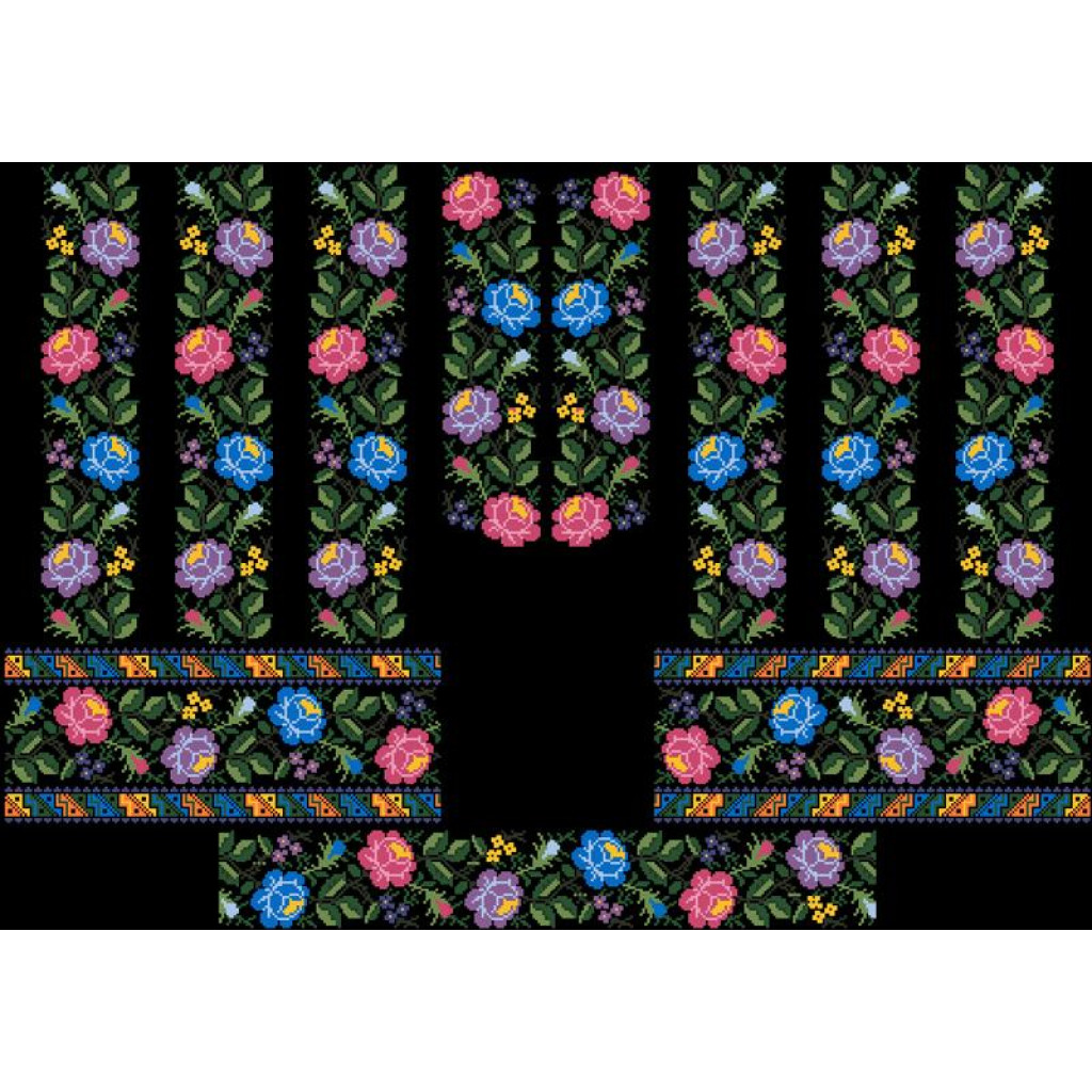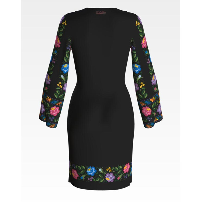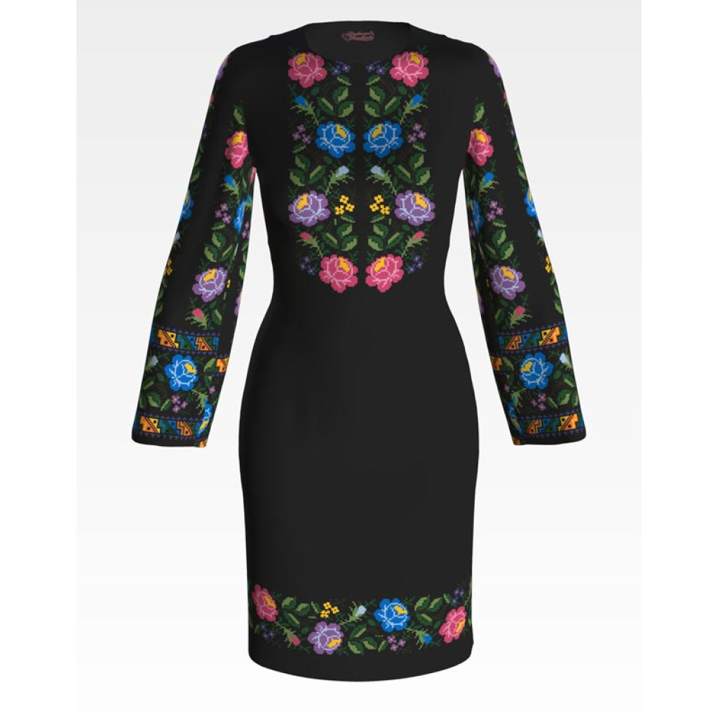 ПЛ124шЧнннн Барвиста вишиванка Заготовка для вишивки - Сукня жіноча Одеська троянда р.42-54 шовк, чорний