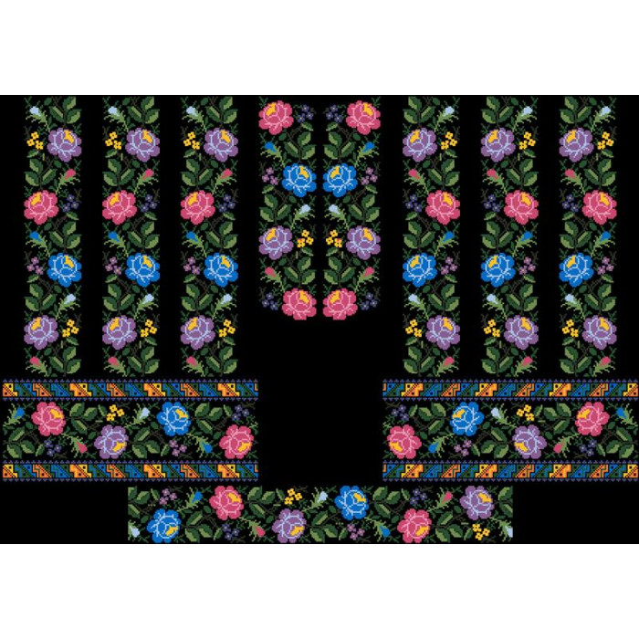 Заготовка для вишивки жіночої сукні Одеська троянда призначена для часткової зашивки бісером або нитками. Схема надрукована на шовковій тканині чорного кольору екологічно чистими стійкими фарбами, що не змиваються після прання. Відрізи розкроєні з урахуванням запасів для зручного вишивання та подальшого пошиття виробу.