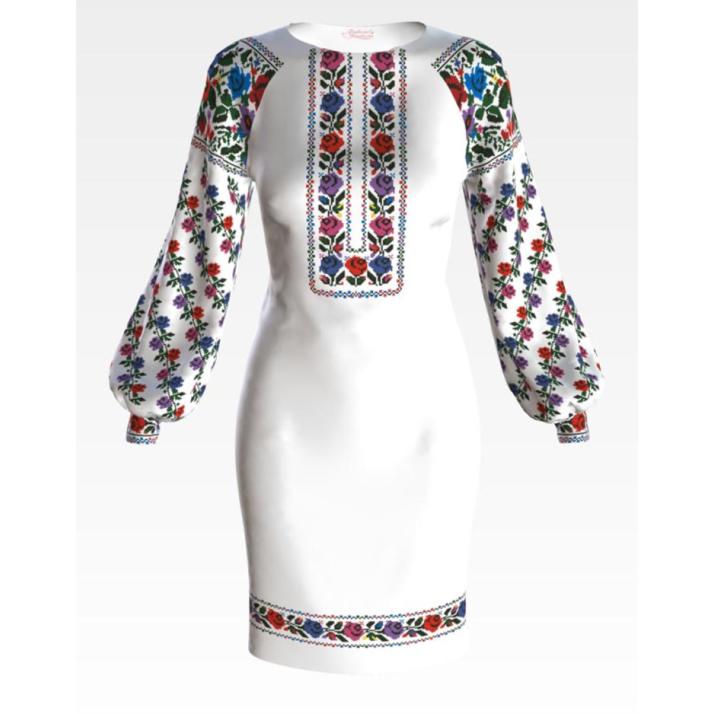 ПЛ127пБнннн Барвиста вишиванка Заготовка для вишивки - Сукня жіноча Борщівська р.42-54 габардин, білий