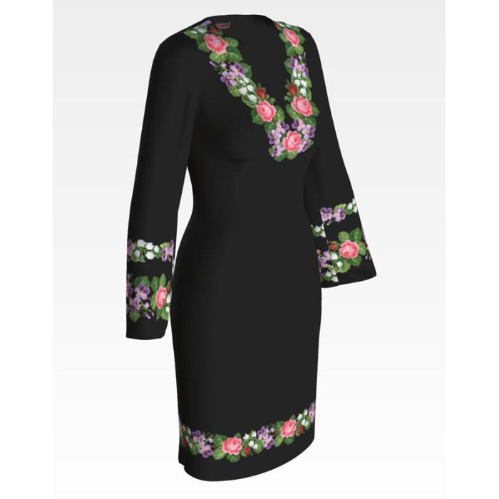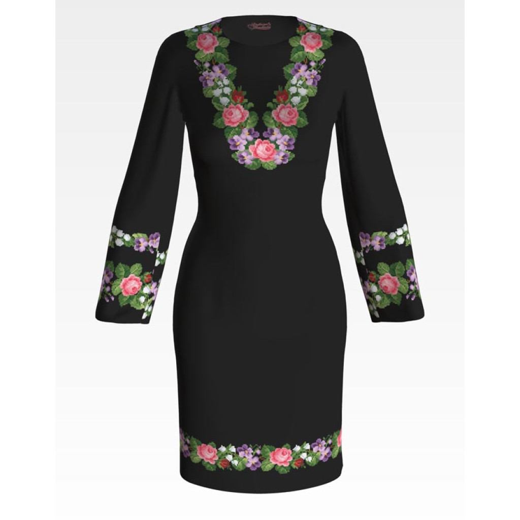 ПЛ130шЧнннн Барвиста вишиванка Заготовка для вишивки - Сукня жіноча Ніжні квіти р.42-54 шовк, чорний