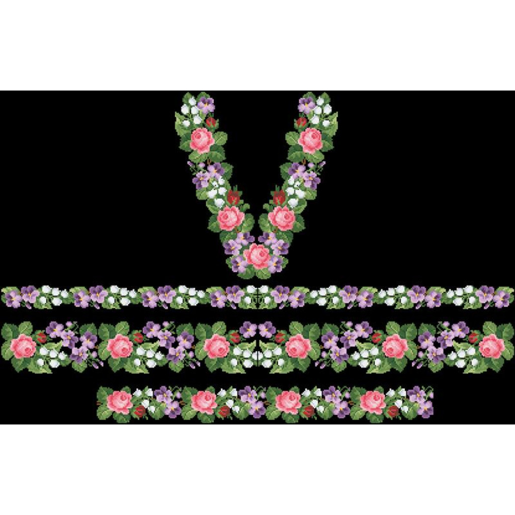 Заготовка для вишивки жіночої сукні Ніжні квіти призначена для часткової зашивки бісером або нитками. Схема надрукована на шовковій тканині чорного кольору екологічно чистими стійкими фарбами, що не змиваються після прання. Відрізи розкроєні з урахуванням запасів для зручного вишивання та подальшого пошиття виробу.