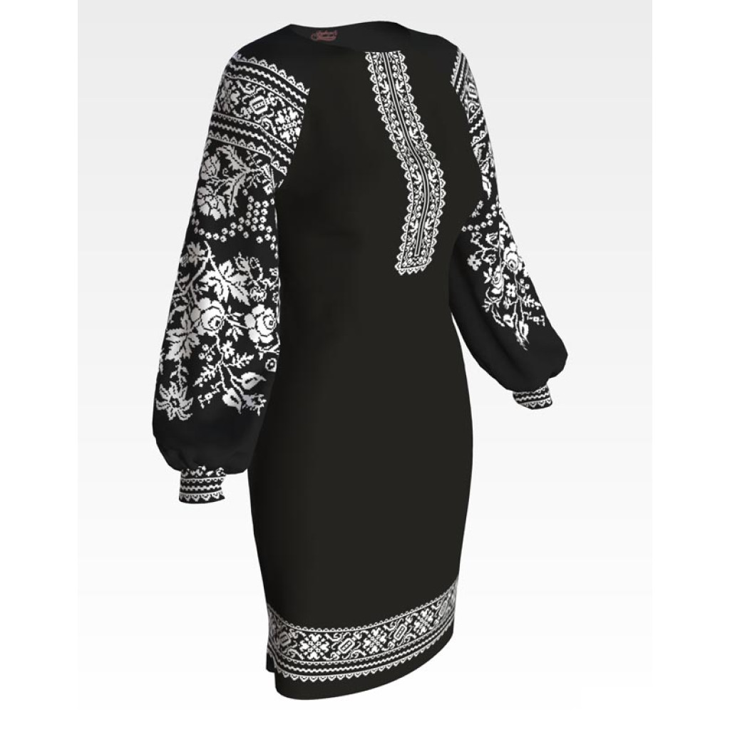 ПЛ132кЧнннн Барвиста вишиванка Заготовка для вишивки - Сукня жіноча Сокальська святкова р.42-54 атлас, чорний
