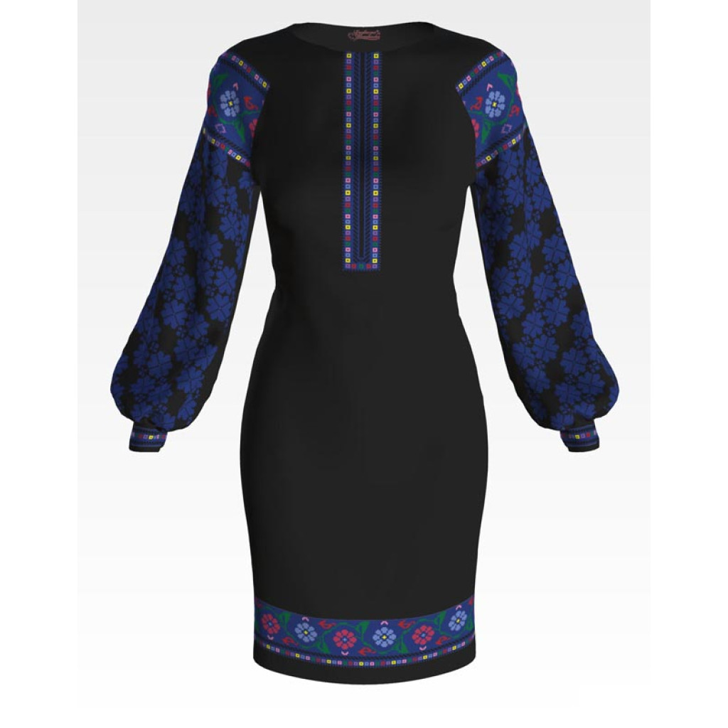 ПЛ135шЧнннн Барвиста вишиванка Заготовка для вишивки - Сукня жіноча Борщівський край р.42-54 шовк, чорний
