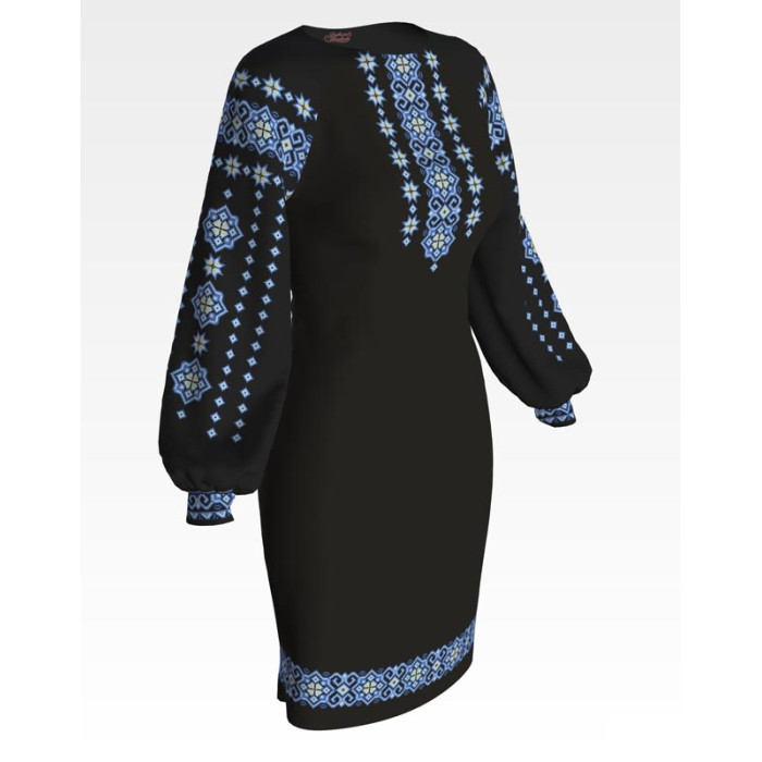 Заготовка для вишивки жіночої сукні Елегантність призначена для часткової зашивки бісером або нитками. Схема надрукована на атлас-котоні чорного кольору екологічно чистими стійкими фарбами, що не змиваються після прання. Відрізи розкроєні з урахуванням необхідних запасів для зручного вишивання та подальшого пошиття виробу.