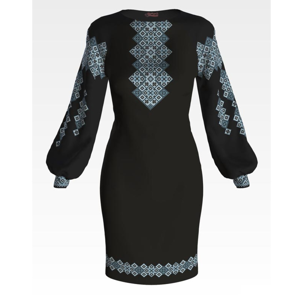 ПЛ144кЧнннн Барвиста вишиванка Заготовка для вишивки - Сукня жіноча Зоряна ніч р.42-54 атлас, чорний