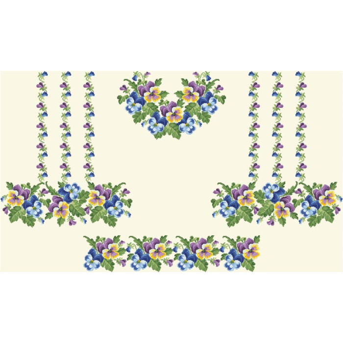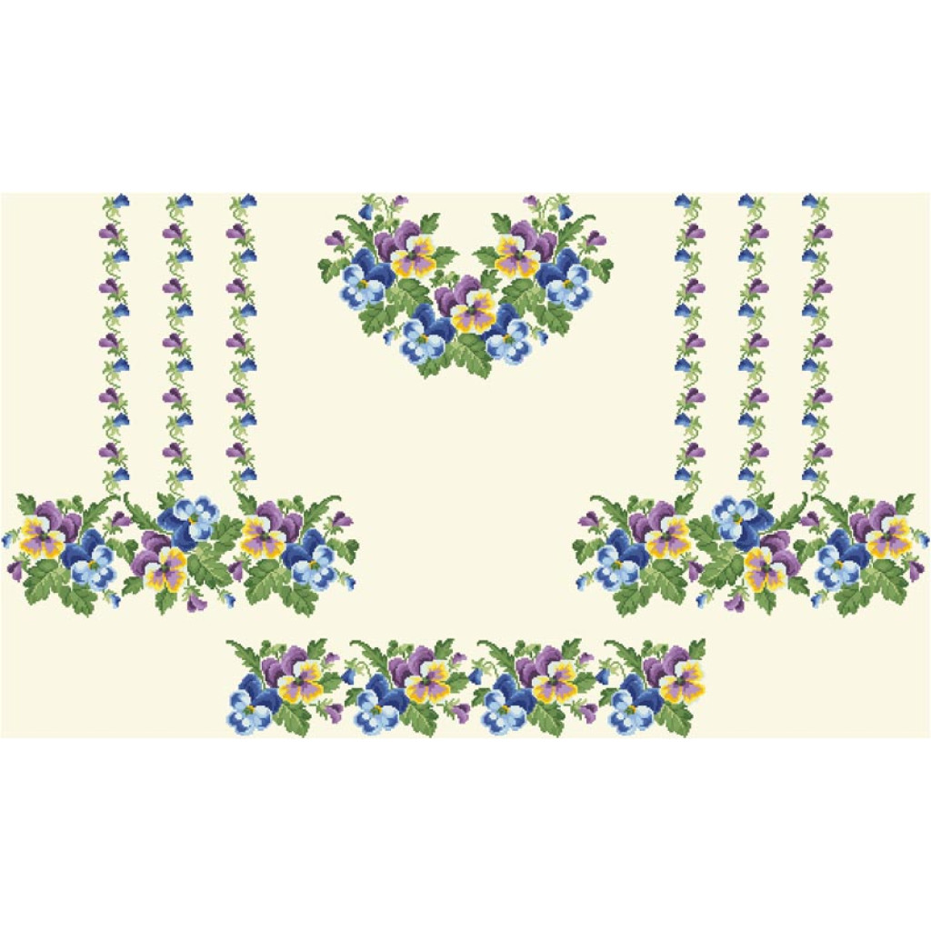 Заготовка для вишивки жіночої сукні Елегантні братки призначена для часткової зашивки бісером або нитками. Схема надрукована на льоні бежевого кольору екологічно чистими стійкими фарбами, що не змиваються після прання. Відрізи розкроєні з урахуванням необхідних запасів для зручного вишивання та подальшого пошиття виробу.