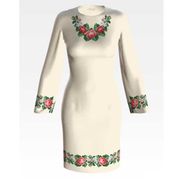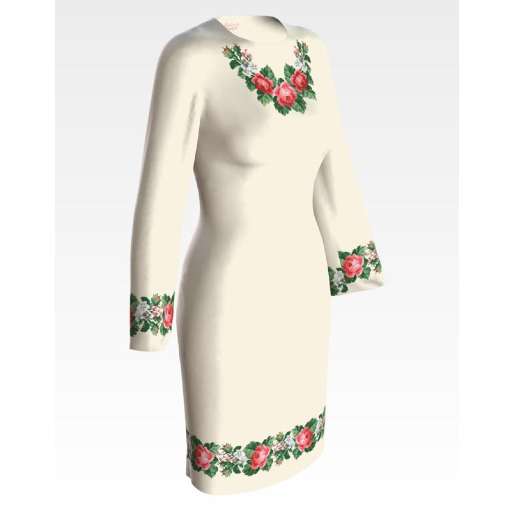 ПЛ148кМнннн Барвиста вишиванка Заготовка для вишивки - Сукня жіноча Свіжість троянд р.42-54 атлас, бежевий