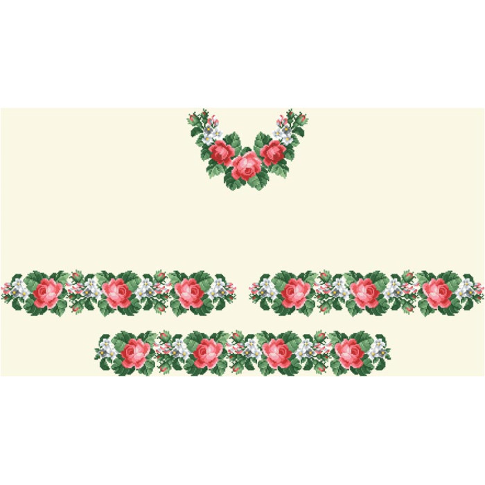 Заготовка для вишивки жіночої сукні Свіжість троянд призначена для часткової зашивки бісером або нитками. Схема надрукована на атлас-котоні бежевого кольору екологічно чистими стійкими фарбами, що не змиваються після прання. Відрізи розкроєні з урахуванням необхідних запасів для зручного вишивання та подальшого пошиття виробу.