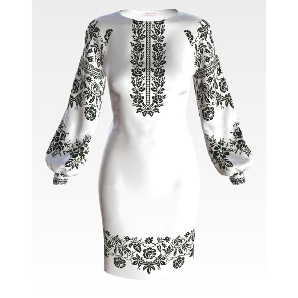 ПЛ157кБнннн Барвиста вишиванка Заготовка для вишивки - Сукня жіноча Сокальська троянда р.42-54 атлас, білий