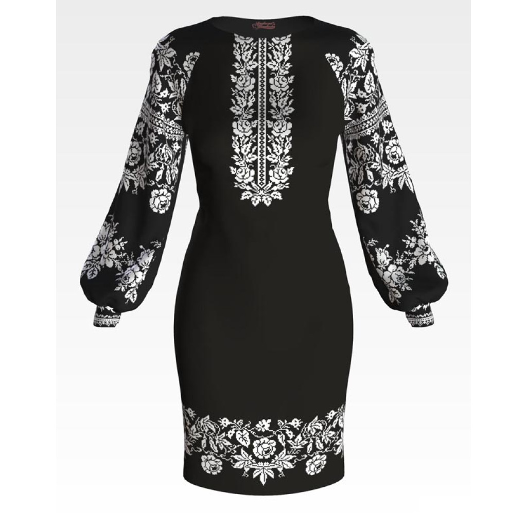 ПЛ157лЧнннн Барвиста вишиванка Заготовка для вишивки - Сукня жіноча Сокальська троянда р.42-54 льон, чорний