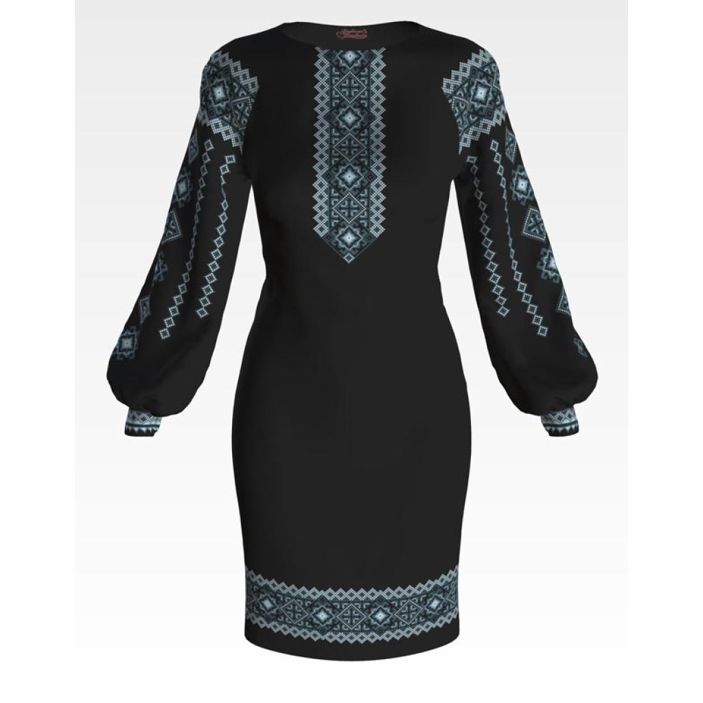 ПЛ158кЧнннн Барвиста вишиванка Заготовка для вишивки - Сукня жіноча Ніжність літа р.42-54 атлас, чорний