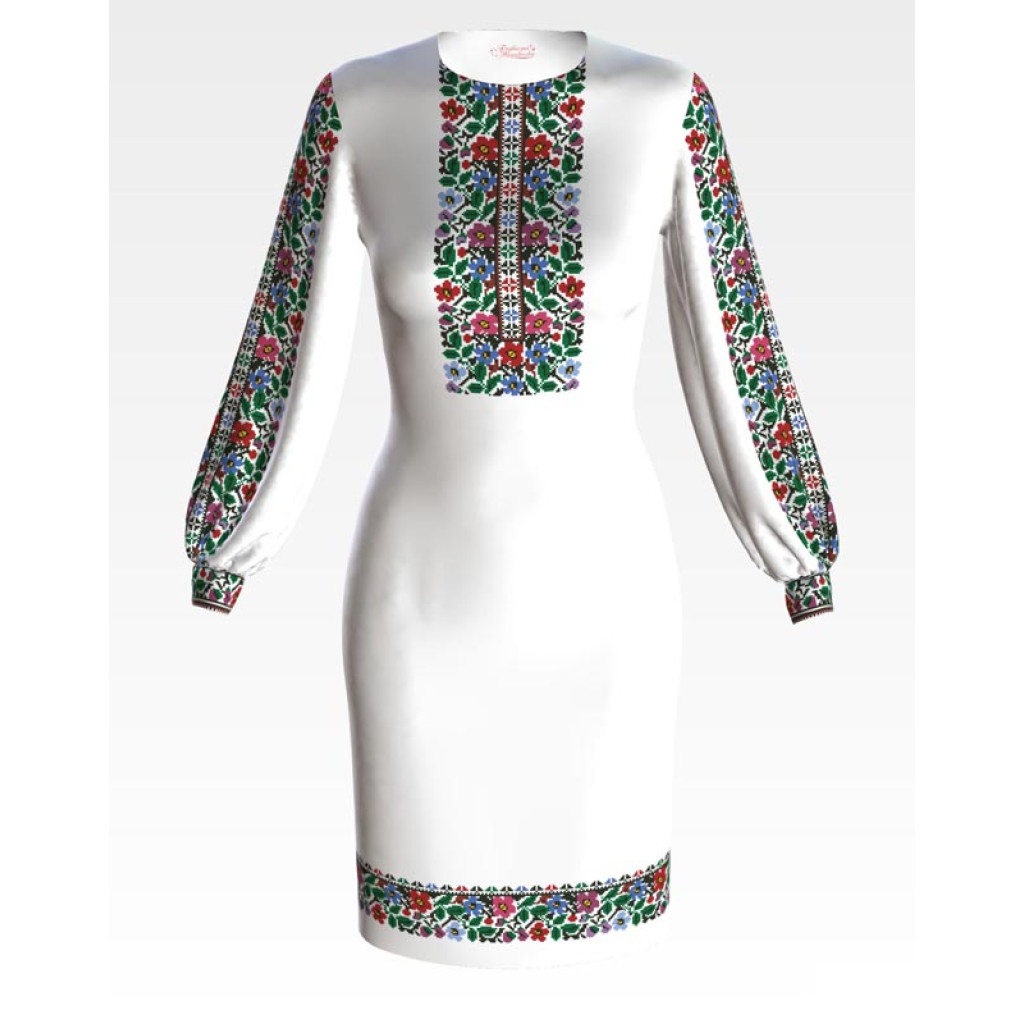 ПЛ160лБнннн Барвиста вишиванка Заготовка для вишивки - Сукня жіноча Борщівська квіткова р.42-54 льон, білий