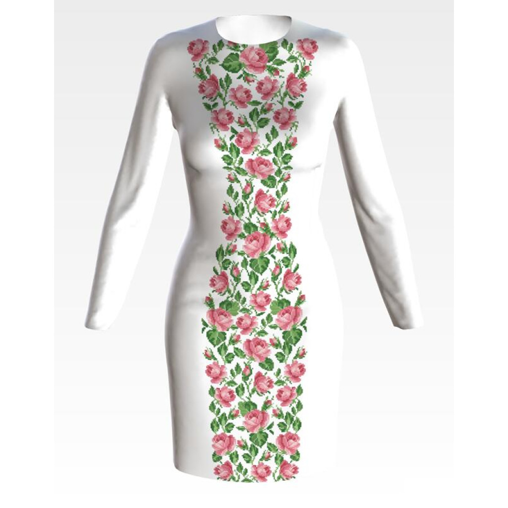 ПЛ168кБнннн Барвиста вишиванка Заготовка для вишивки - Сукня жіноча Ніжні троянди р.42-54 атлас, білий