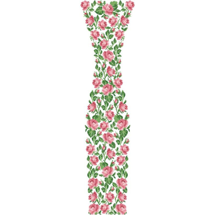 Заготовка для вишивки жіночої сукні Ніжні троянди призначена для часткової зашивки бісером або нитками. Схема надрукована на атлас-котоні білого кольору екологічно чистими стійкими фарбами, що не змиваються після прання. Відрізи розкроєні з урахуванням необхідних запасів для зручного вишивання та подальшого пошиття виробу.