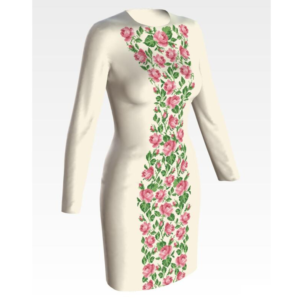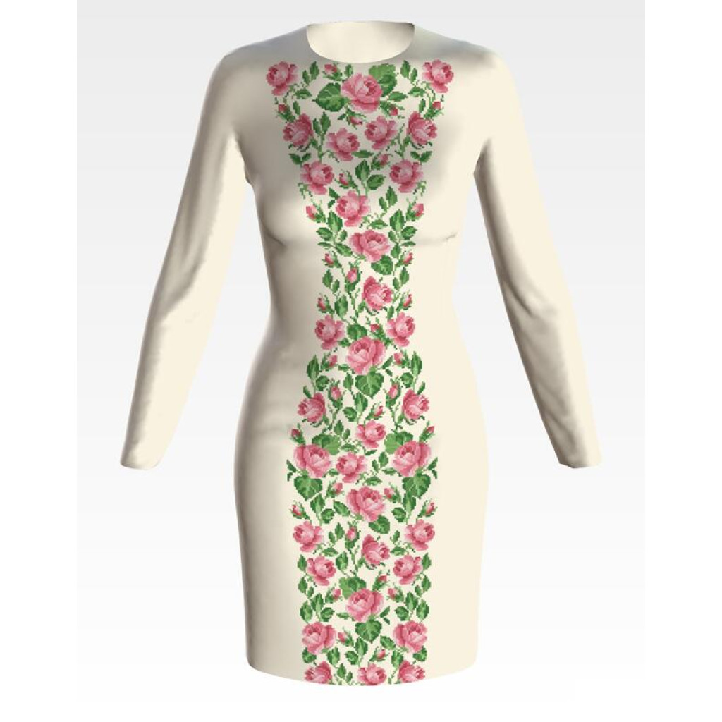 ПЛ168кМнннн Барвиста вишиванка Заготовка для вишивки - Сукня жіноча Ніжні троянди р.42-54 атлас, бежевий