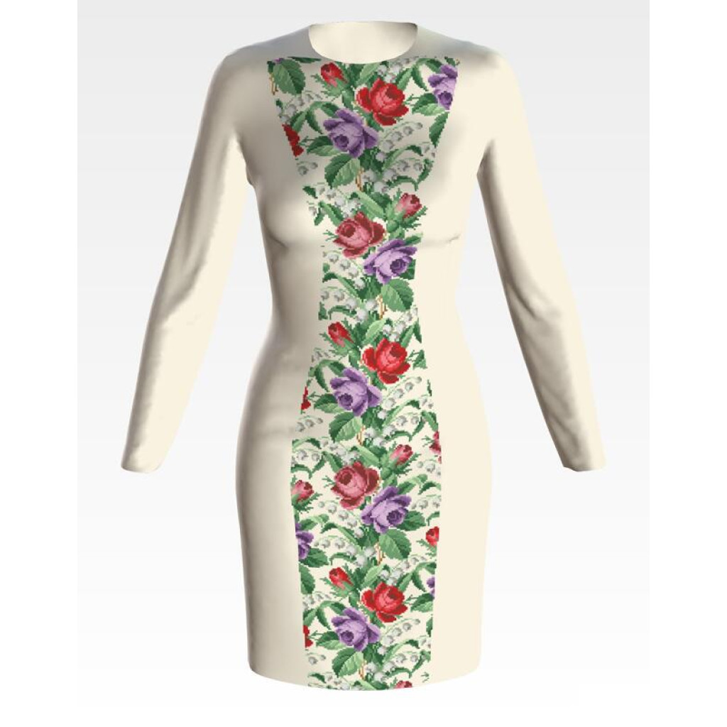 ПЛ169кМнннн Барвиста вишиванка Заготовка для вишивки - Сукня жіноча Троянди і конвалії р.42-54 атлас, бежевий