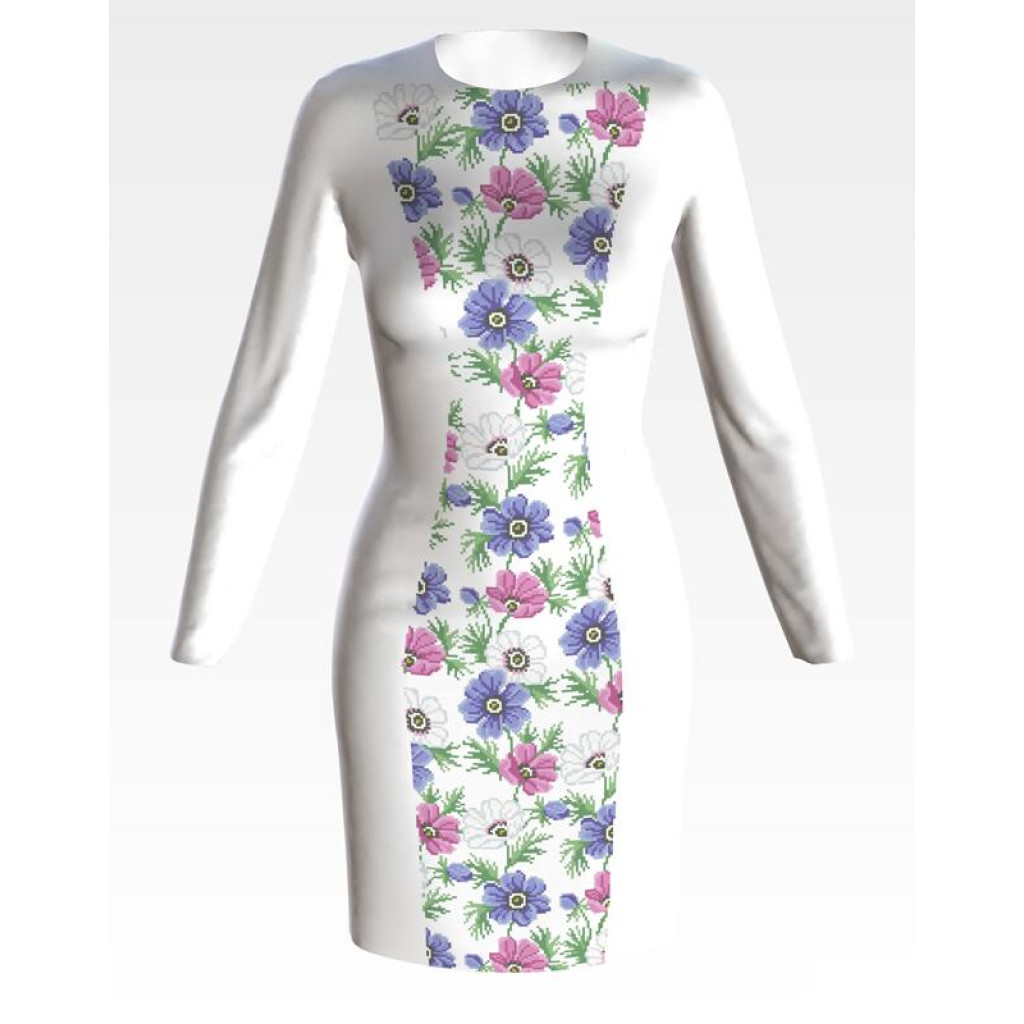 Заготовка для вишивки жіночої сукні Анемони призначена для часткової зашивки бісером або нитками. Схема надрукована на білому габардині екологічно чистими стійкими фарбами, що не змиваються після прання. Відрізи розкроєні з урахуванням необхідних запасів для зручного вишивання та подальшого пошиття виробу.