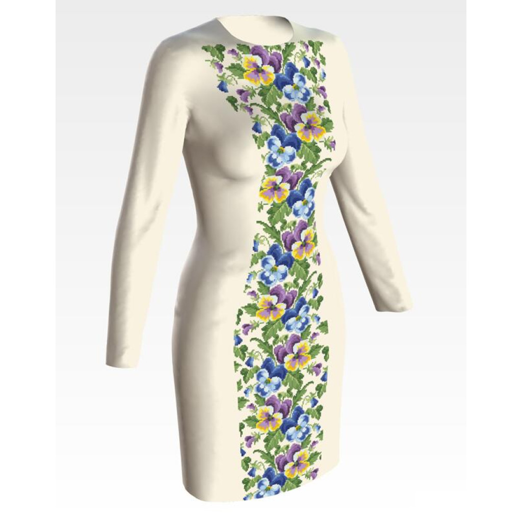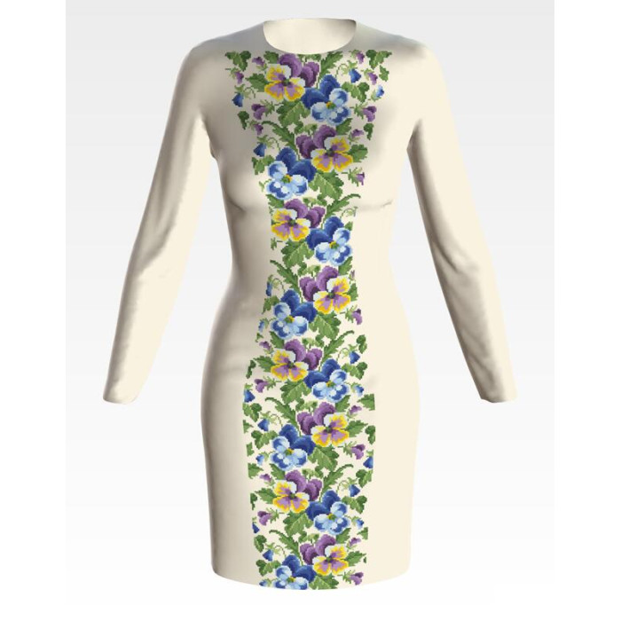 Заготовка для вишивки жіночої сукні Братки призначена для часткової зашивки бісером або нитками. Схема надрукована на домотканому полотні бежевого кольору екологічно чистими стійкими фарбами, що не змиваються після прання. Відрізи розкроєні з урахуванням необхідних запасів для зручного вишивання та подальшого пошиття виробу.