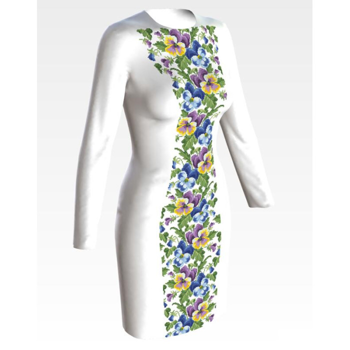 Заготовка для вишивки жіночої сукні Братки призначена для часткової зашивки бісером або нитками. Схема надрукована на білому габардині екологічно чистими стійкими фарбами, що не змиваються після прання. Відрізи розкроєні з урахуванням необхідних запасів для зручного вишивання та подальшого пошиття виробу.