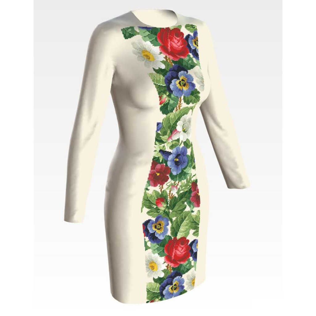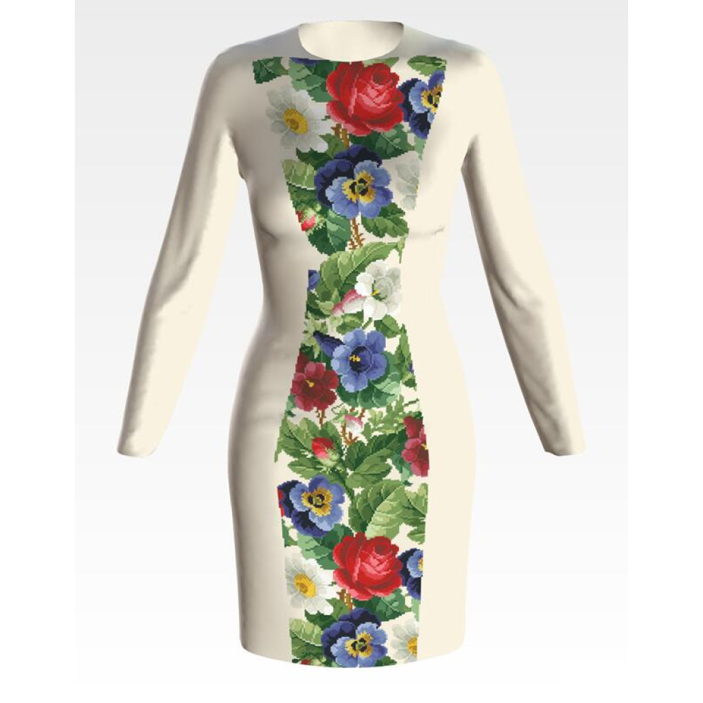 ПЛ174дМнннн Барвиста вишиванка Заготовка для вишивки - Сукня жіноча Троянди, братки, петунії, ромашки р.42-54 домоткане полотно, бежевий