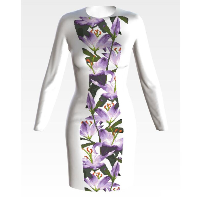 Заготовка для вишивки жіночої сукні Місячні лілії призначена для часткової зашивки бісером або нитками. Схема надрукована на домотканому полотні білого кольору екологічно чистими стійкими фарбами, що не змиваються після прання. Відрізи розкроєні з урахуванням необхідних запасів для зручного вишивання та подальшого пошиття виробу.