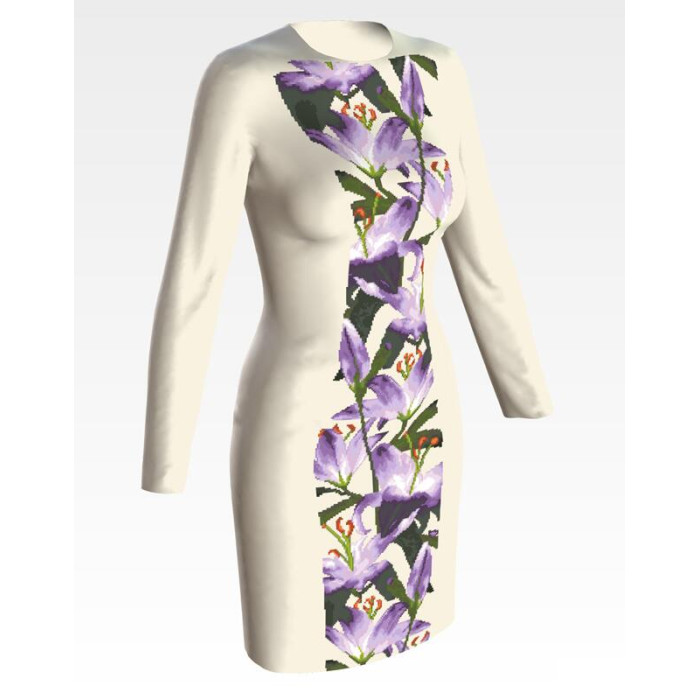 Заготовка для вишивки жіночої сукні Місячні лілії призначена для часткової зашивки бісером або нитками. Схема надрукована на атлас-котоні бежевого кольору екологічно чистими стійкими фарбами, що не змиваються після прання. Відрізи розкроєні з урахуванням необхідних запасів для зручного вишивання та подальшого пошиття виробу.