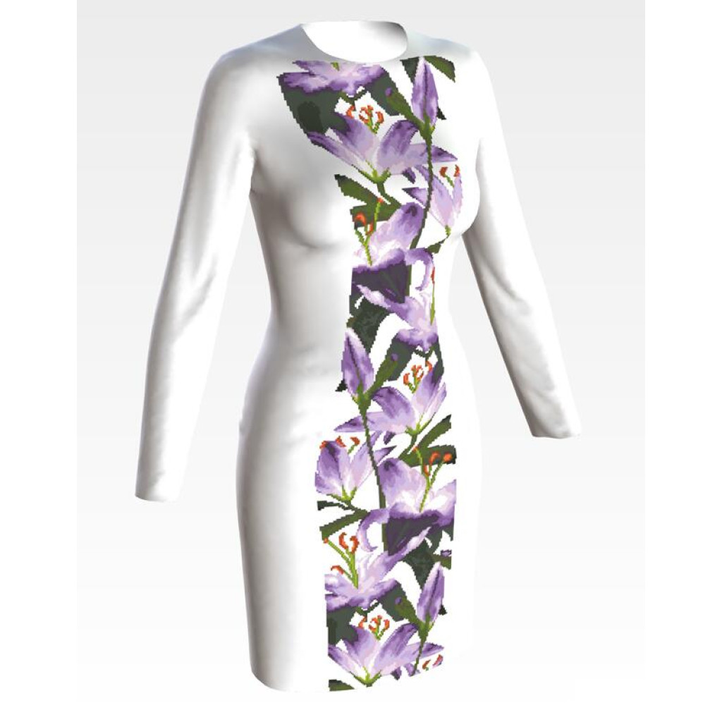 ПЛ175пБнннн Барвиста вишиванка Заготовка для вишивки - Сукня жіноча Місячні лілії р.42-54 габардин, білий