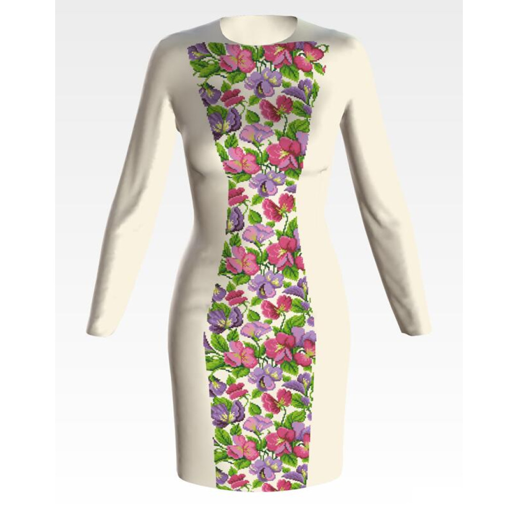 ПЛ176кМнннн Барвиста вишиванка Заготовка для вишивки - Сукня жіноча Фіалки р.42-54 атлас, бежевий