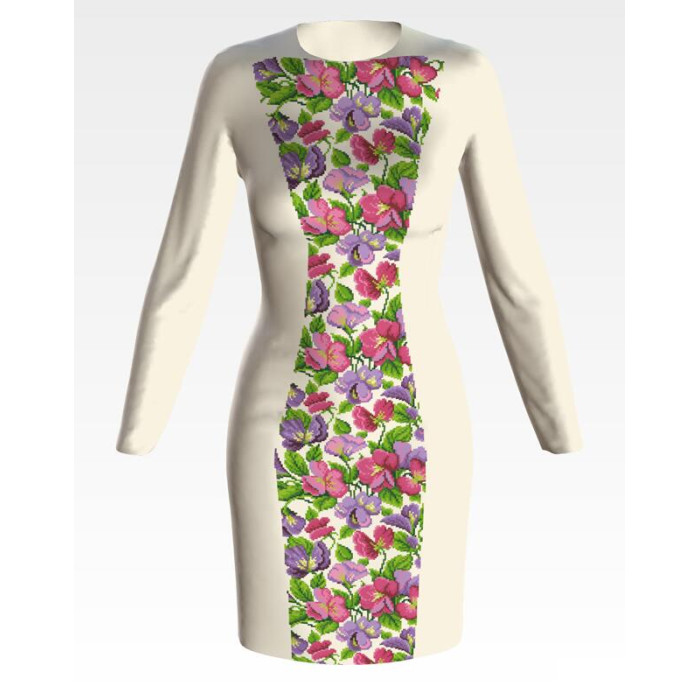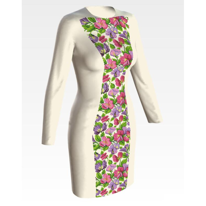 Заготовка для вишивки жіночої сукні Фіалки призначена для часткової зашивки бісером або нитками. Схема надрукована на атлас-котоні бежевого кольору екологічно чистими стійкими фарбами, що не змиваються після прання. Відрізи розкроєні з урахуванням необхідних запасів для зручного вишивання та подальшого пошиття виробу.