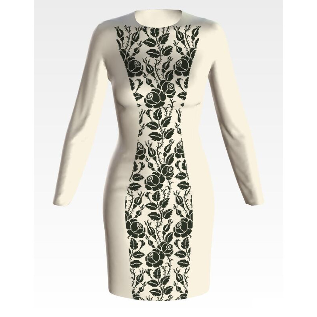 Заготовка для вишивки жіночої сукні Троянди. Орнамент призначена для часткової зашивки бісером або нитками. Схема надрукована на атлас-котоні бежевого кольору екологічно чистими стійкими фарбами, що не змиваються після прання. Відрізи розкроєні з урахуванням необхідних запасів для зручного вишивання та подальшого пошиття виробу.