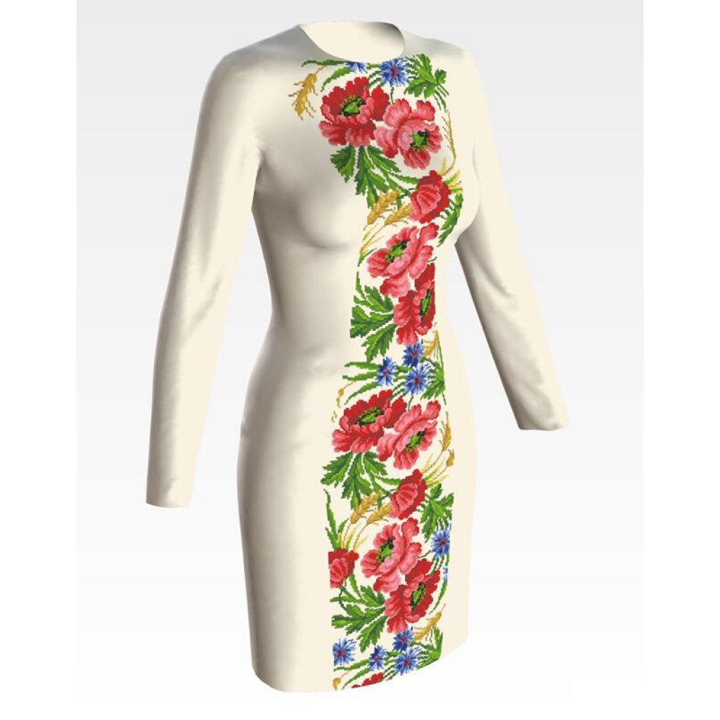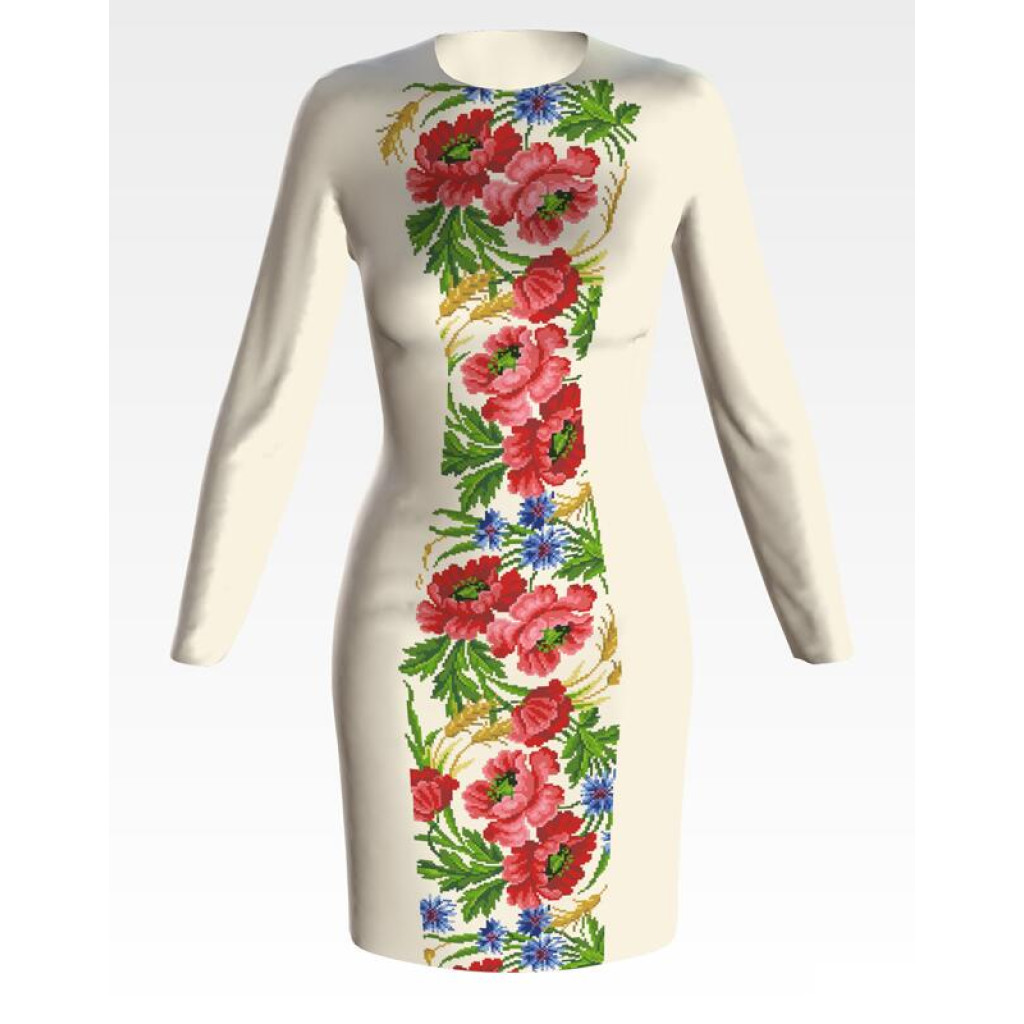 ПЛ180дМнннн Барвиста вишиванка Заготовка для вишивки - Сукня жіноча Червоні маки, волошки, колоски р.42-54 домоткане полотно, бежевий