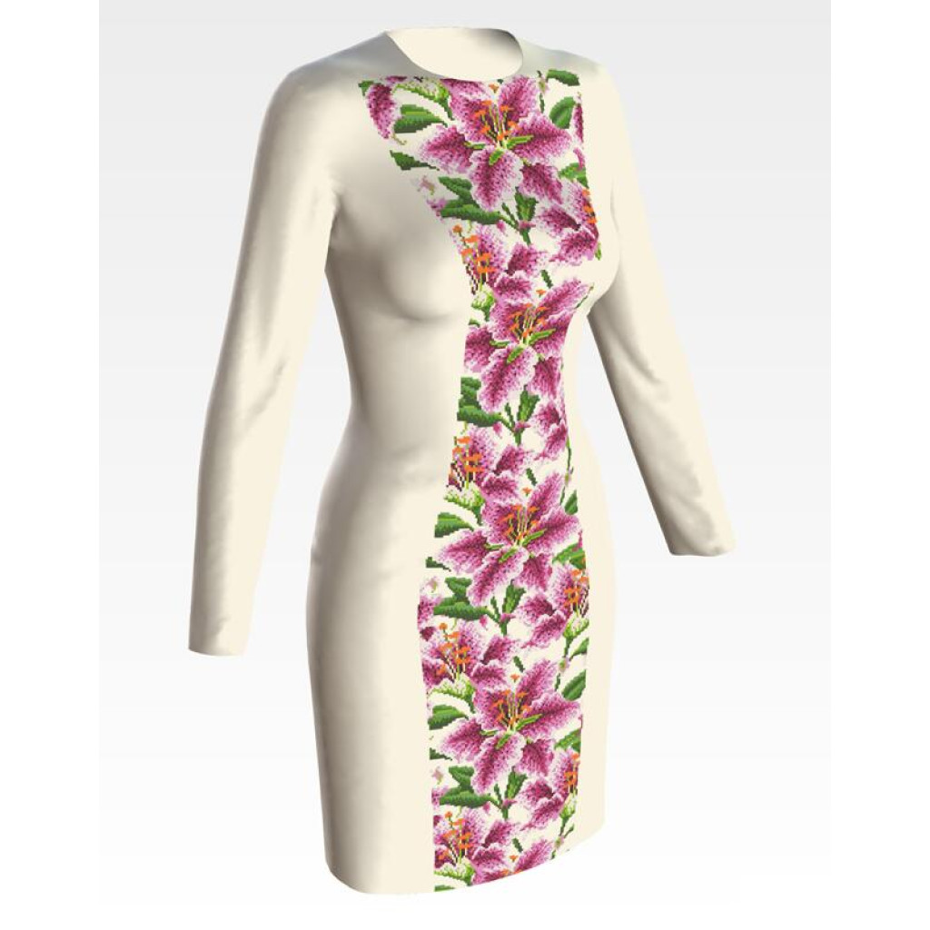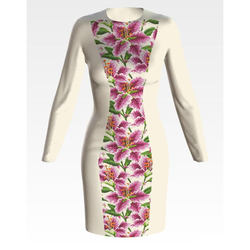 ПЛ181дМнннн Барвиста вишиванка Заготовка для вишивки - Сукня жіноча Розкішні лілії р.42-54 домоткане полотно, бежевий