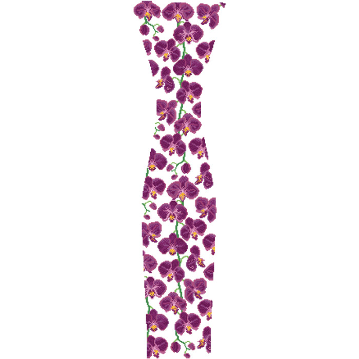 Заготовка для вишивки жіночої сукні Орхідеї кольору фуксії призначена для часткової зашивки бісером або нитками. Схема надрукована на домотканому полотні білого кольору екологічно чистими стійкими фарбами, що не змиваються після прання. Відрізи розкроєні з урахуванням необхідних запасів для зручного вишивання та подальшого пошиття виробу.