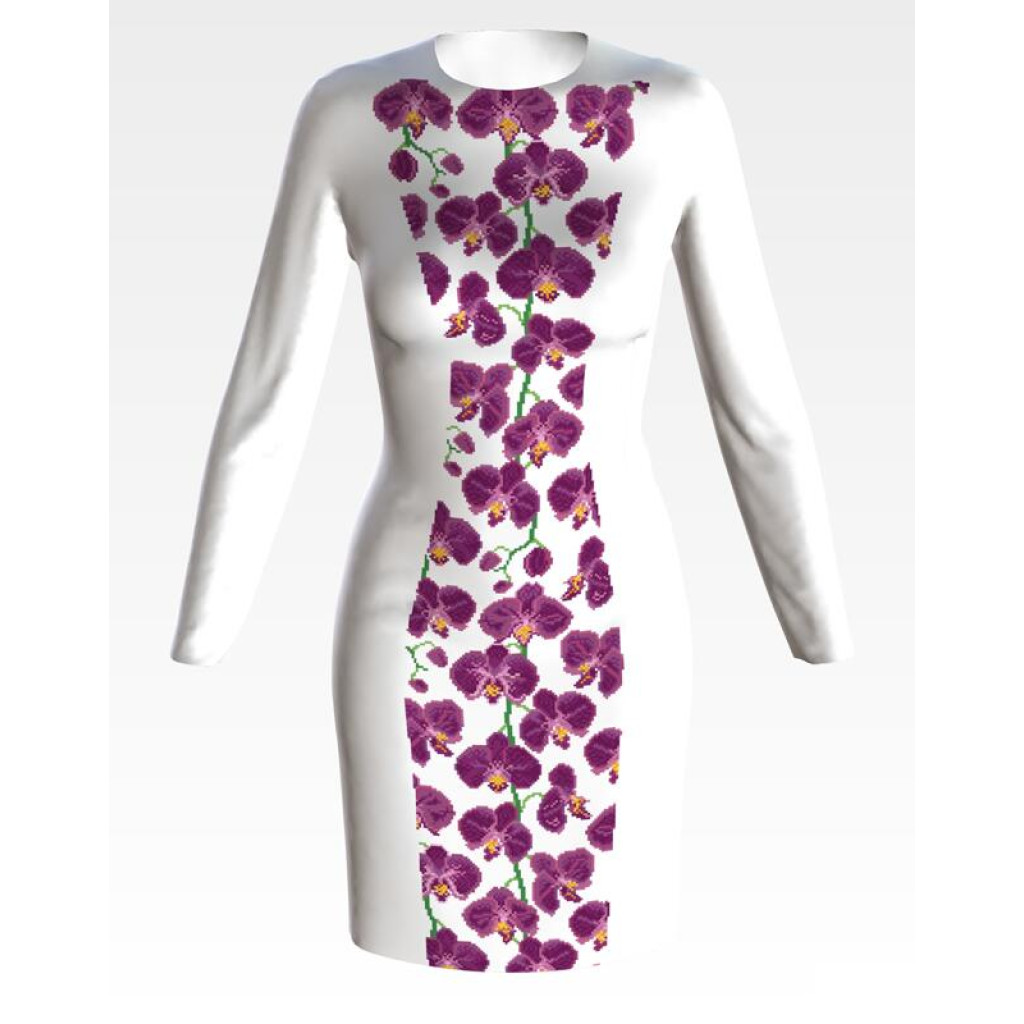 ПЛ182кБнннн Барвиста вишиванка Заготовка для вишивки - Сукня жіноча Орхідеї кольору фуксії р.42-54 атлас, білий