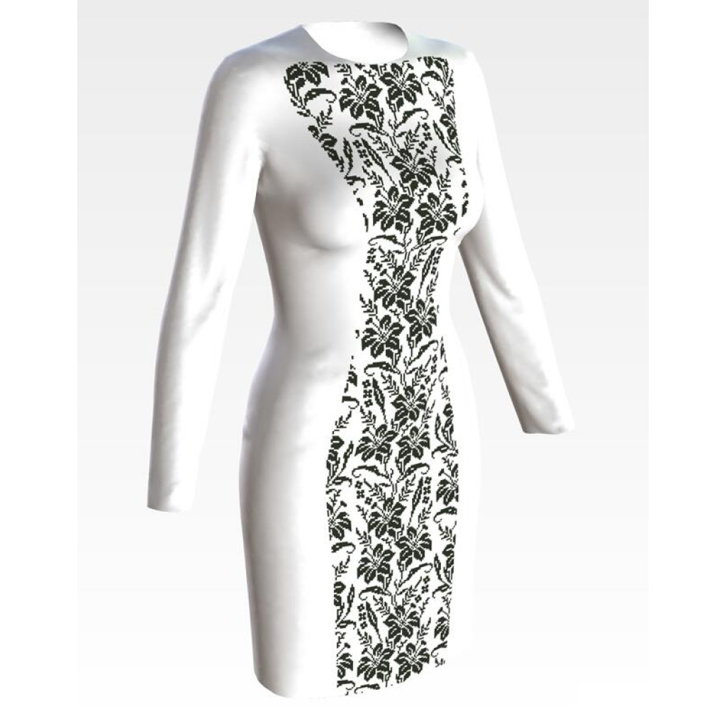 Заготовка для вишивки жіночої сукні Лілії. Орнамент призначена для часткової зашивки бісером або нитками. Схема надрукована на білому габардині екологічно чистими стійкими фарбами, що не змиваються після прання. Відрізи розкроєні з урахуванням необхідних запасів для зручного вишивання та подальшого пошиття виробу.