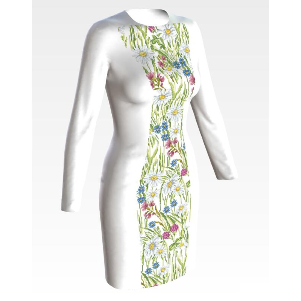 ПЛ192кБнннн Барвиста вишиванка Заготовка для вишивки - Сукня жіноча Ромашки, волошки, дзвіночки р.42-54 атлас, білий