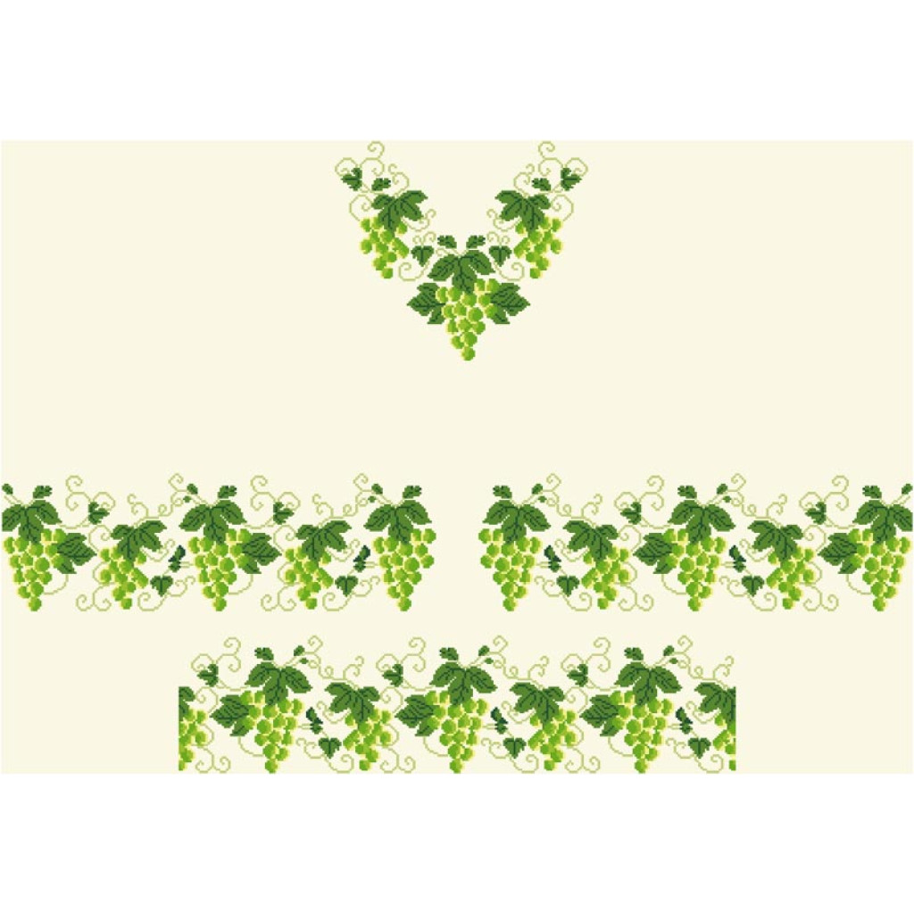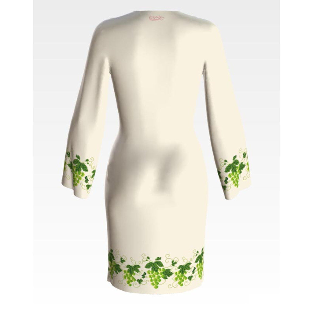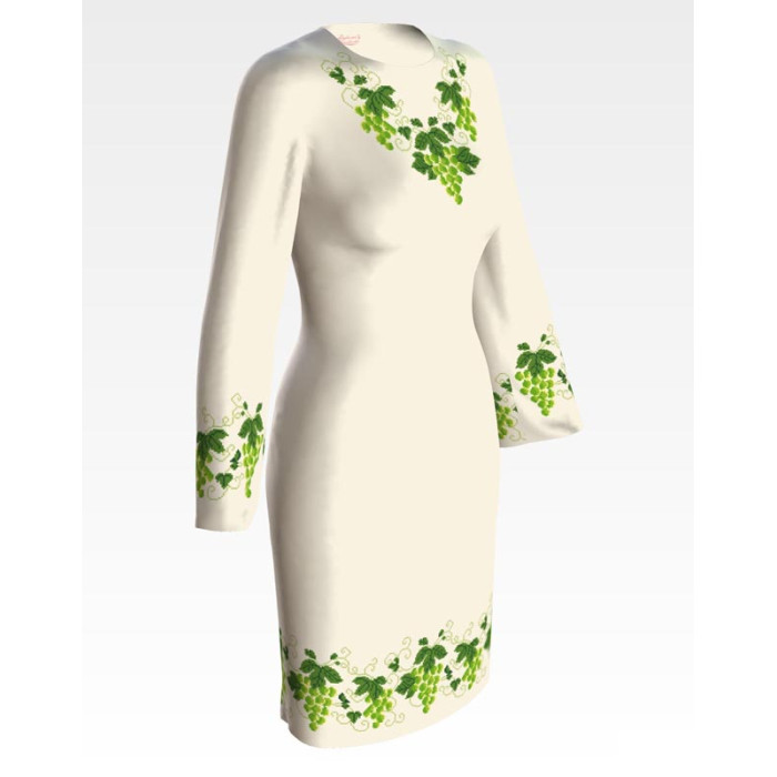 Заготовка для вишивки жіночої сукні Виноград призначена для часткової зашивки бісером або нитками. Схема надрукована на домотканому полотні бежевого кольору екологічно чистими стійкими фарбами, що не змиваються після прання. Відрізи розкроєні з урахуванням необхідних запасів для зручного вишивання та подальшого пошиття виробу.