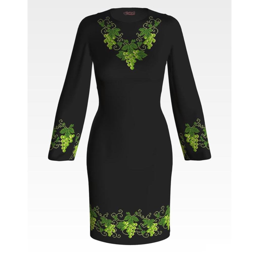 Заготовка для вишивки жіночої сукні Виноград призначена для часткової зашивки бісером або нитками. Схема надрукована на атлас-котоні чорного кольору екологічно чистими стійкими фарбами, що не змиваються після прання. Відрізи розкроєні з урахуванням необхідних запасів для зручного вишивання та подальшого пошиття виробу.