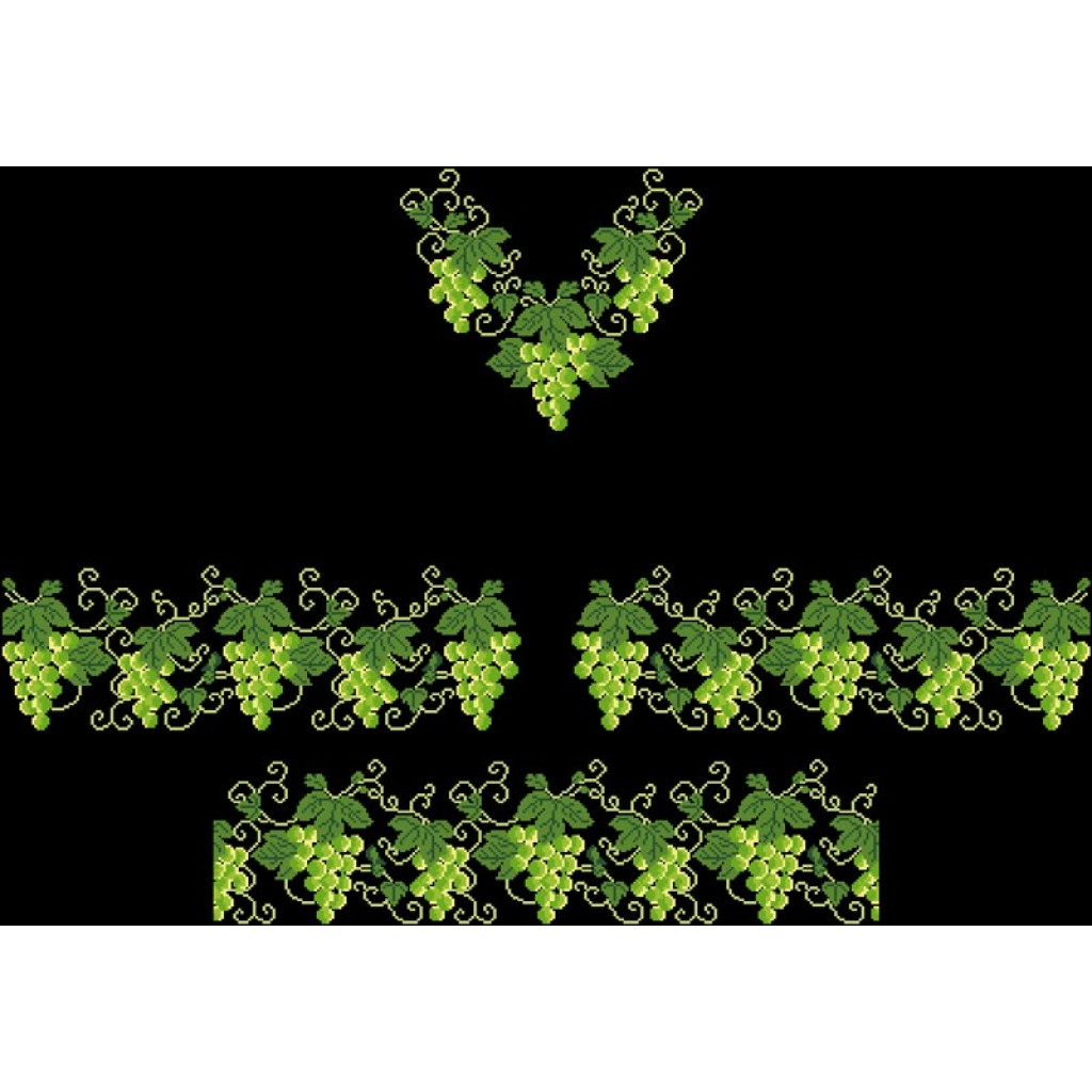 Заготовка для вишивки жіночої сукні Виноград призначена для часткової зашивки бісером або нитками. Схема надрукована на льоні чорного кольору екологічно чистими стійкими фарбами, що не змиваються після прання. Відрізи розкроєні з урахуванням необхідних запасів для зручного вишивання та подальшого пошиття виробу.