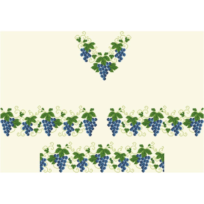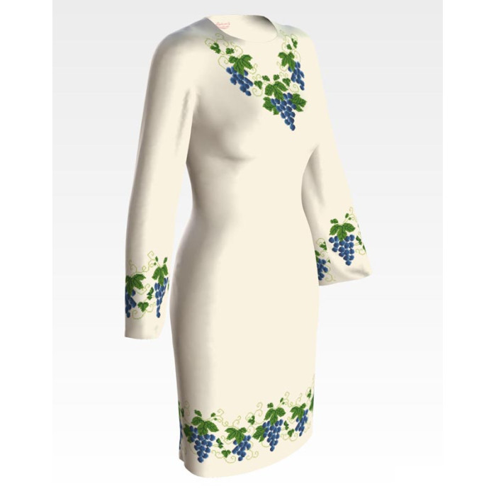 Заготовка для вишивки жіночої сукні Виноград призначена для часткової зашивки бісером або нитками. Схема надрукована на домотканому полотні бежевого кольору екологічно чистими стійкими фарбами, що не змиваються після прання. Відрізи розкроєні з урахуванням необхідних запасів для зручного вишивання та подальшого пошиття виробу.