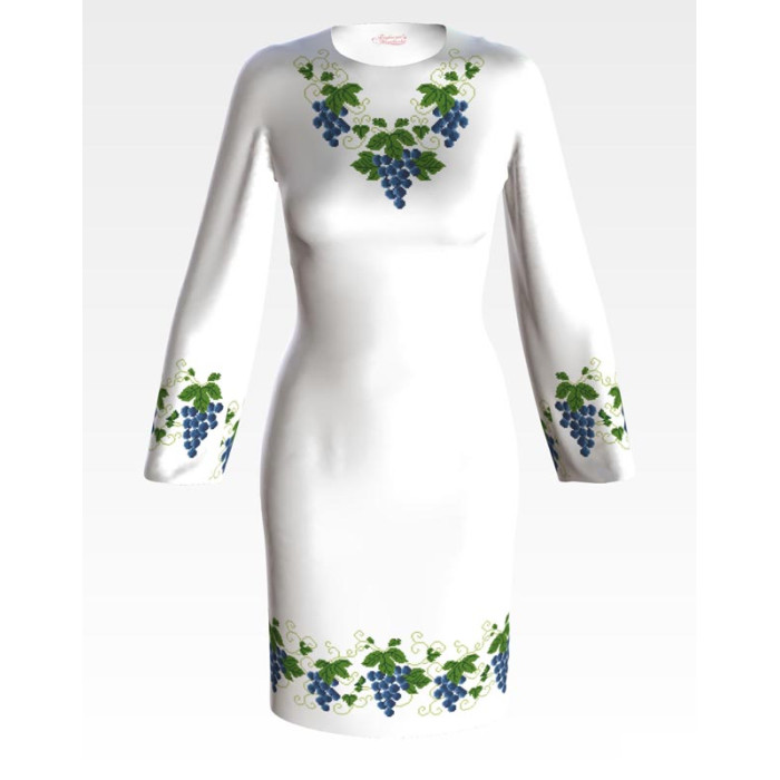 Заготовка для вишивки жіночої сукні Виноград призначена для часткової зашивки бісером або нитками. Схема надрукована на льоні білого кольору екологічно чистими стійкими фарбами, що не змиваються після прання. Відрізи розкроєні з урахуванням необхідних запасів для зручного вишивання та подальшого пошиття виробу.