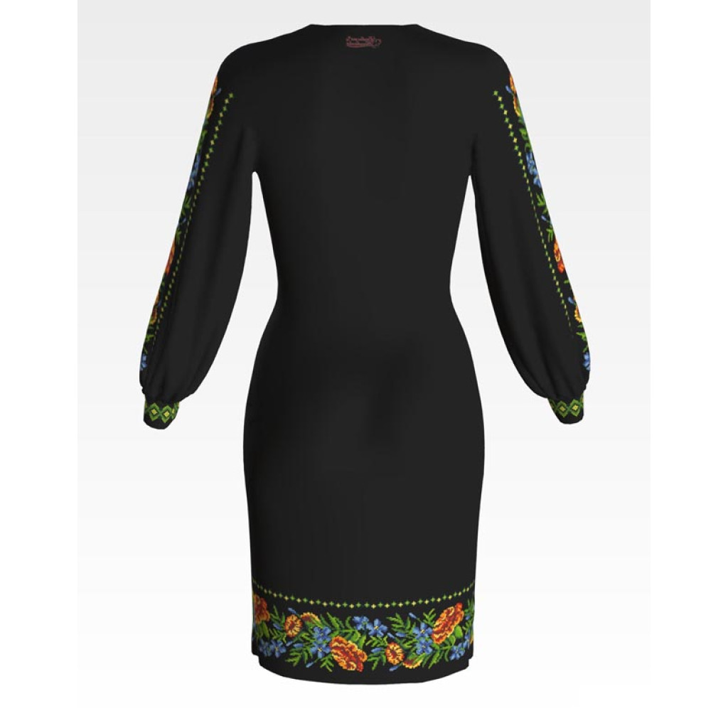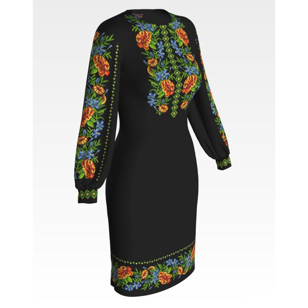 ПЛ195шЧнннн Барвиста вишиванка Заготовка для вишивки - Сукня жіноча Мамині чорнобривці р.42-54 шовк, чорний