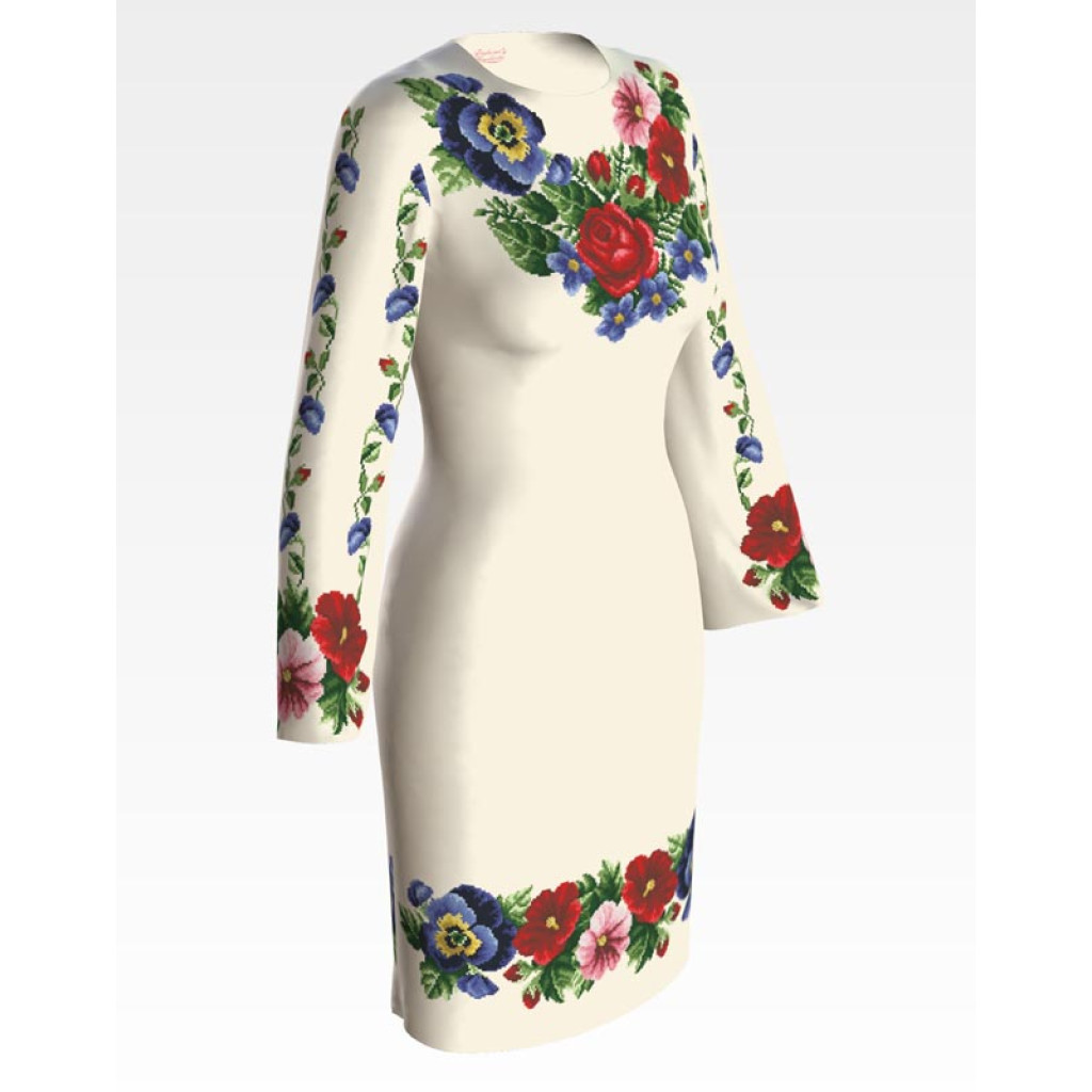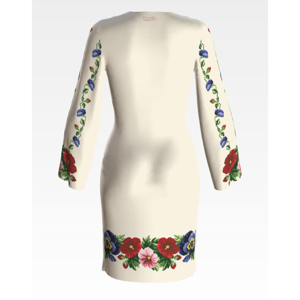 ПЛ351дМнннн Барвиста вишиванка Заготовка для вишивки - Сукня жіноча Мальви, троянди, братки р.42-54 домоткане полотно, бежевий