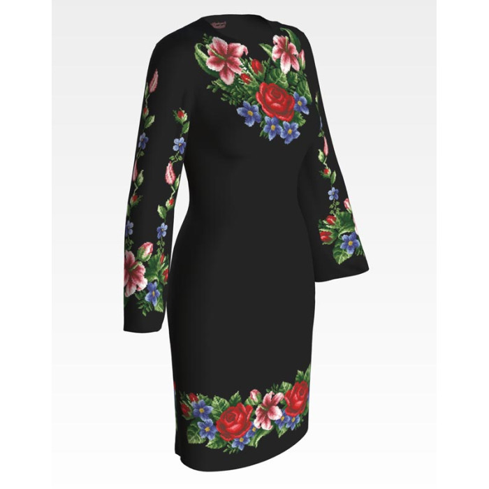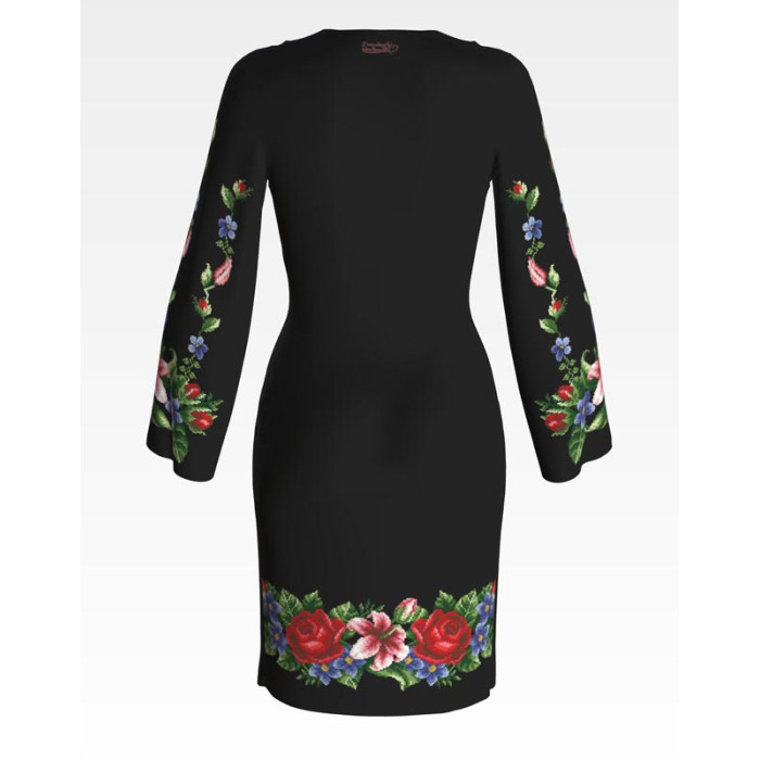 ПЛ361шЧнннн Барвиста вишиванка Заготовка для вишивки - Сукня жіноча Лілеї, троянди, незабудки р.42-54 шовк, чорний
