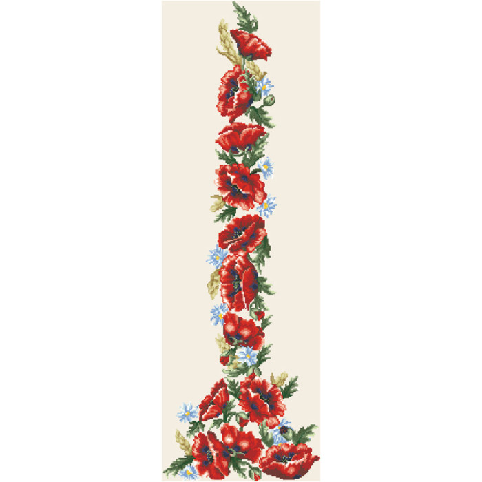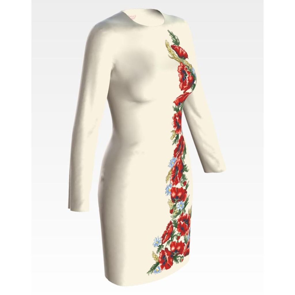 Заготовка для вишивки жіночої сукні Червоні маки, ромашки, колоски призначена для часткової зашивки бісером або нитками. Схема надрукована на атлас-котоні бежевого кольору екологічно чистими стійкими фарбами, що не змиваються після прання. Відрізи розкроєні з урахуванням необхідних запасів для зручного вишивання та подальшого пошиття виробу.