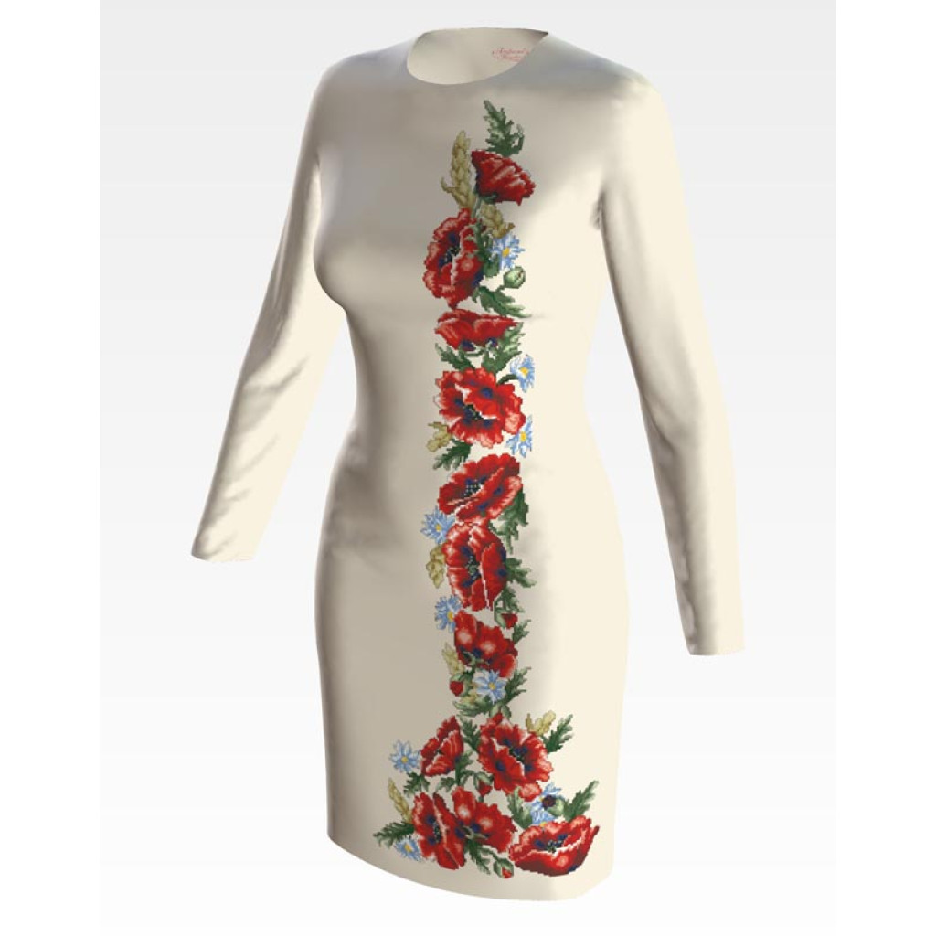 ПЛ541кМнннн Барвиста вишиванка Заготовка для вишивки - Сукня жіноча Червоні маки, ромашки, колоски р.42-54 атлас, бежевий